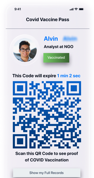 TrustGrid™ enables privacy-preserved tracking of vaccinations and health records, allowing people and organizations to reliably present health-based proofs with ultimate confidentiality.